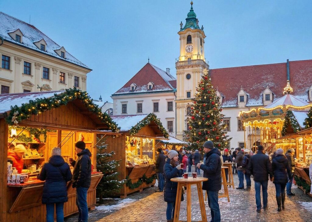 A Christmas tour from Krakow to Bratislava following to Vienna or Budapest offers a magical journey through Central Europe during the holiday season. Travelers can enjoy festive Christmas markets filled with lights, traditional food, and local crafts in both cities. The route provides beautiful winter scenery and a cozy atmosphere along the way. In Bratislava, visitors can explore the Old Town decorated for Christmas and taste seasonal treats like mulled wine and pastries. This tour is perfect for those who want to experience Christmas traditions in several charming cities.